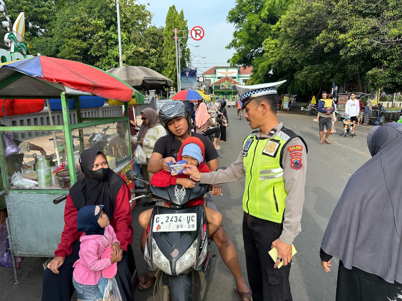 Anggota Satuan Lalu Lintas (Sat Lantas) Polres Batang melaksanakan kegiatan Polantas Menyapa di kawasan Alun-Alun Kota Batang sebagai bentuk edukasi dan imbauan keselamatan kepada para pengendara roda dua. Kegiatan ini digelar pada Rabu pagi dan menyasar para pengendara yang melintas di sekitar pusat kota, yang dikenal sebagai titik dengan aktivitas masyarakat cukup padat.