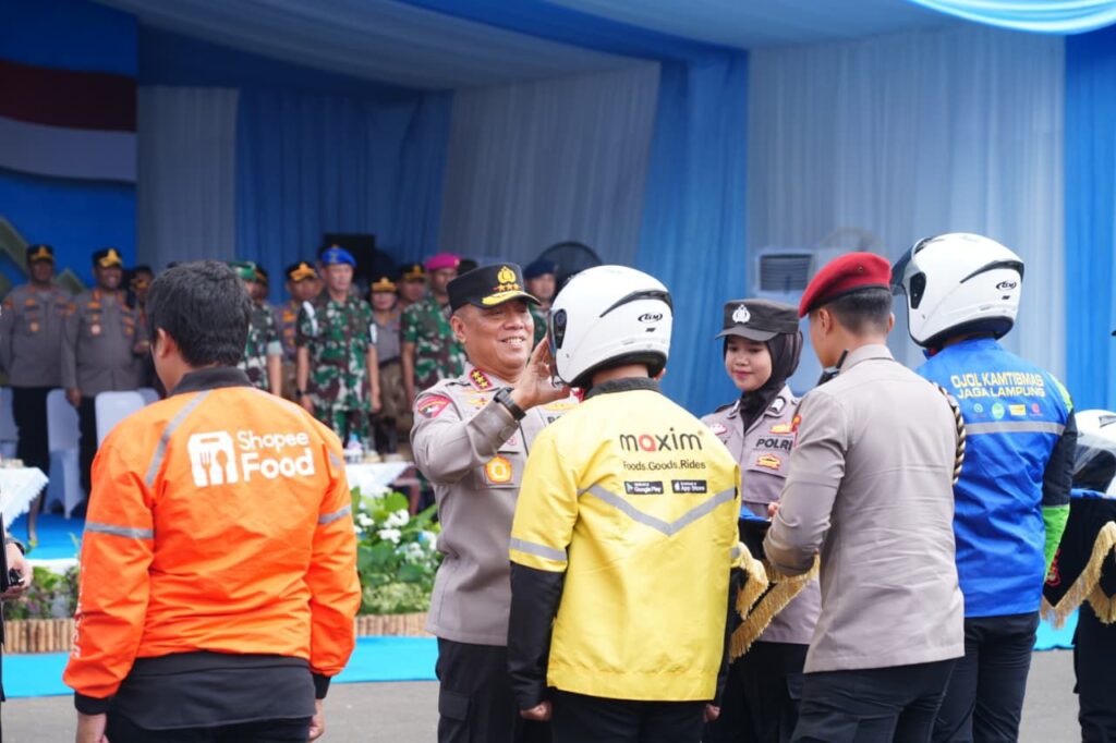 Lampung – Polri memperkuat sinergi keamanan berbasis masyarakat melalui pelaksanaan Apel Ojek Online Kamtibmas Polda Lampung yang dipimpin Wakapolri Komjen Pol Dedi Prasetyo mewakili Kapolri pada Rabu, 3 Desember 2025, di Lapangan Apel Mapolda Lampung. Apel yang dihadiri langsung Wakapolri ini melibatkan 900 driver ojek online dan menjadi penutup rangkaian Apel Ojol Kamtibmas Nasional 2025. Rangkaian ini sebelumnya digelar di empat Polda: pertama di Polda Metro Jaya pada 20 Oktober 2025 dengan melibatkan 10.000 driver ojol; kedua di Polda Jawa Timur pada 1 November 2025 dengan 4.425 driver; ketiga di Polda Jawa Barat pada 8 November 2025 dengan 5.000 driver; dan keempat di Polda DIY pada 21 November 2025 dengan 3.500 driver. Dengan pelaksanaan apel di Lampung, total peserta seluruh rangkaian apel mencapai 22.925 driver ojek online.