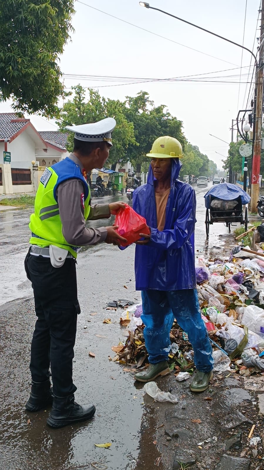 Batang – Satuan Lalu Lintas (Satlantas) Polres Batang kembali menunjukkan kepeduliannya kepada masyarakat melalui kegiatan sosial Satlantas Peduli dengan membagikan makan siang gratis di Jalan Urip Sumoharjo, Kabupaten Batang,